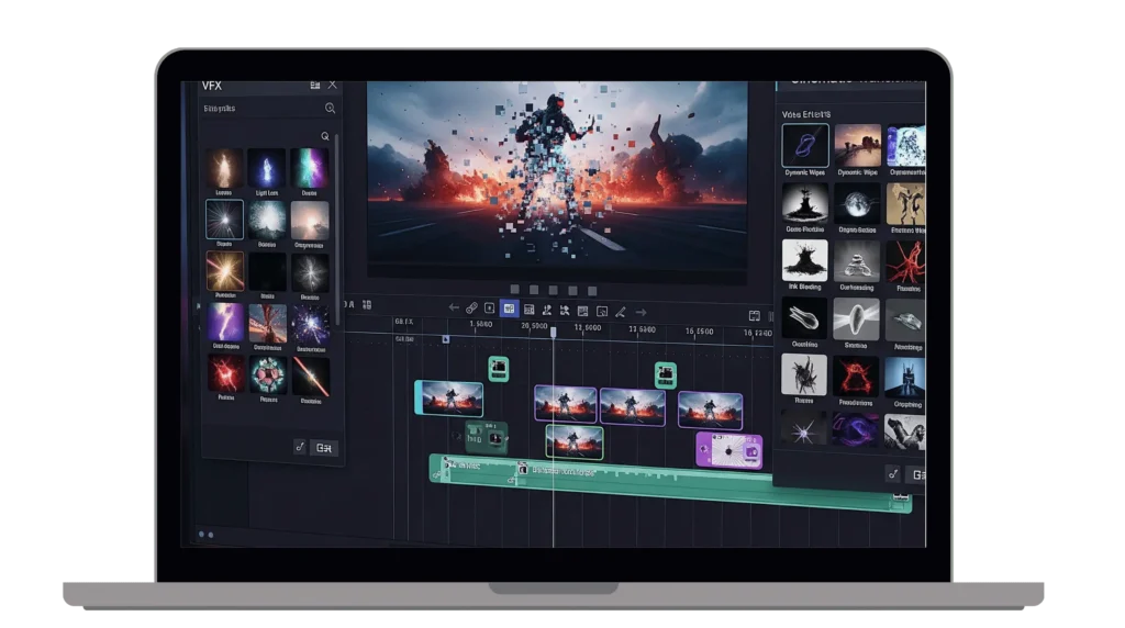 Take your edits beyond the ordinary with a wide range of cinematic transitions and visual effects. From smooth zooms and fades to dynamic glitch effects, every option helps keep viewers fully engaged. Advanced tools like masking, motion blur, and blending modes give creators the power to design seamless scene changes that look straight out of a professional studio. Whether you’re producing content for YouTube, Instagram, or TikTok, these creative transitions add polish, storytelling flow, and a truly professional vibe. These tools ensure seamless transitions and cinematic storytelling that captivate audience, saving hours of manual editing while elevating your videos to the next level.